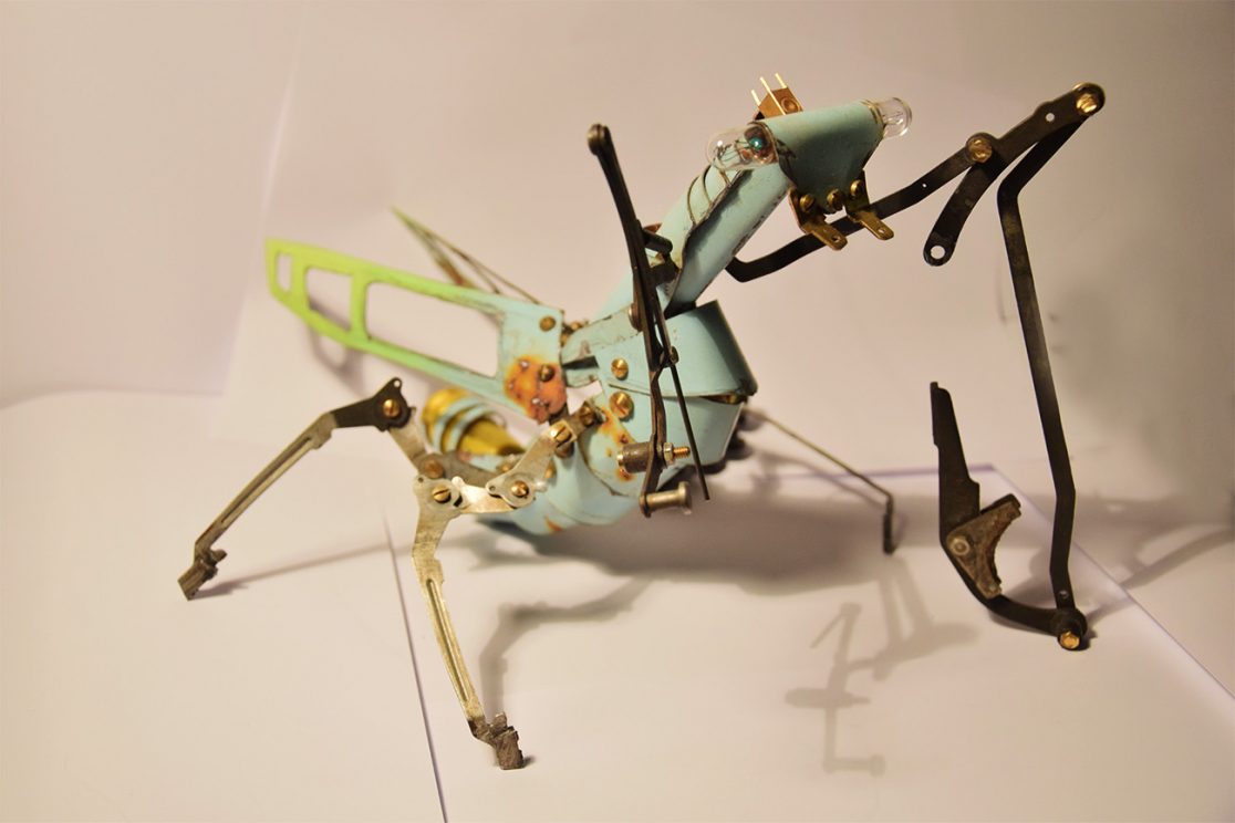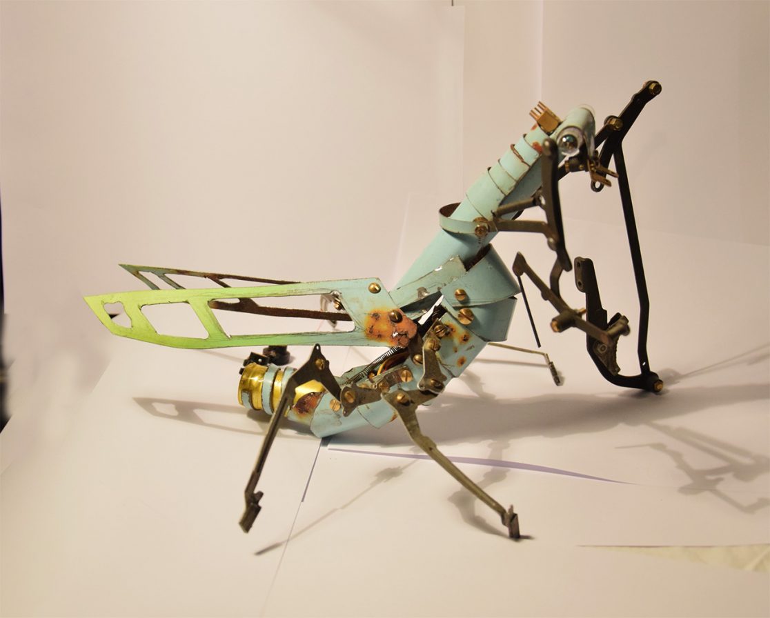 Objets recyclés: Vieille tôle de voiture, vielles machine à écrire, composants électronique