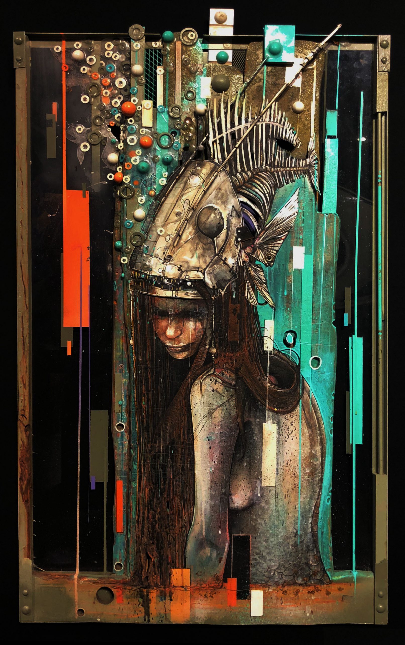 Objets recyclés: bois, plexiglass, billes, rondelles, tasseaux
