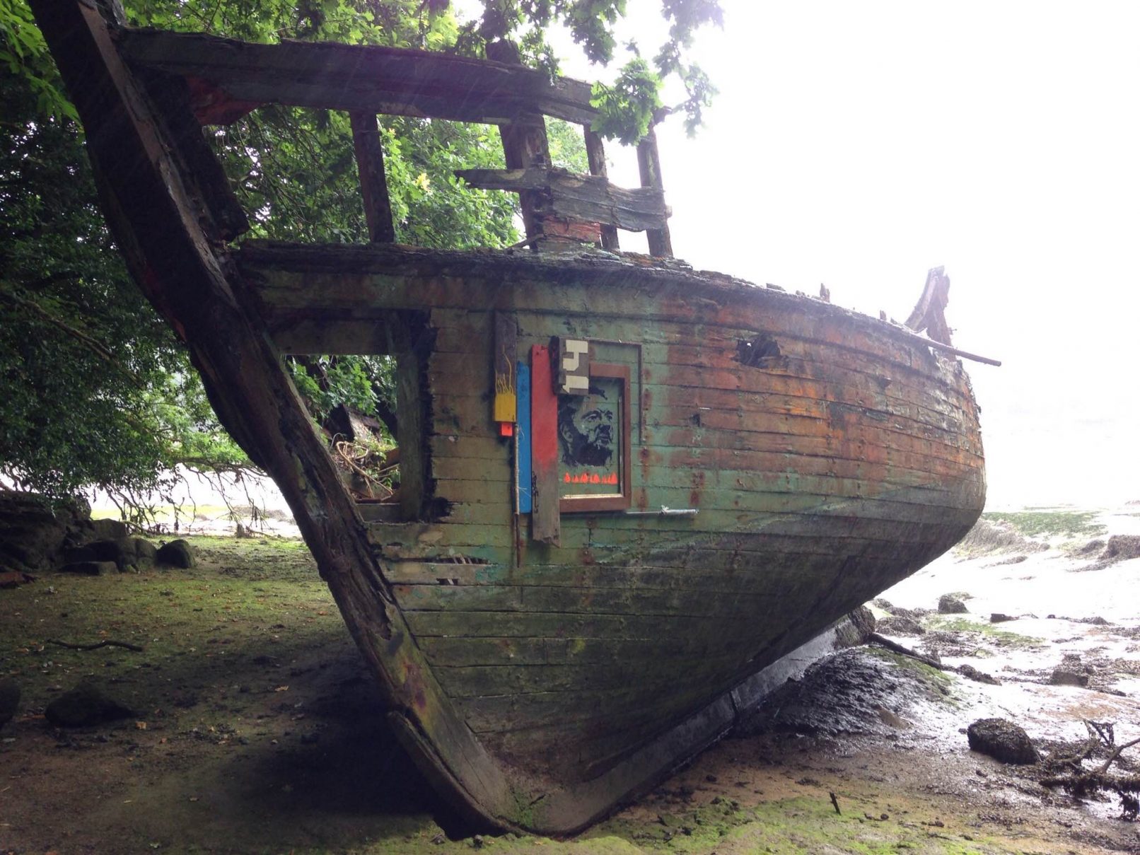 Objets recyclés: Epave, cordes, vieux cadre, cageot